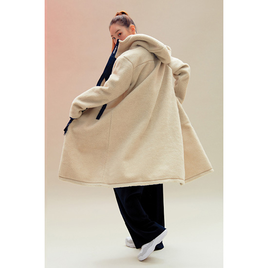 - 단모 소재인 쉽보아 소재의 남녀공용 후드 롱 자켓.