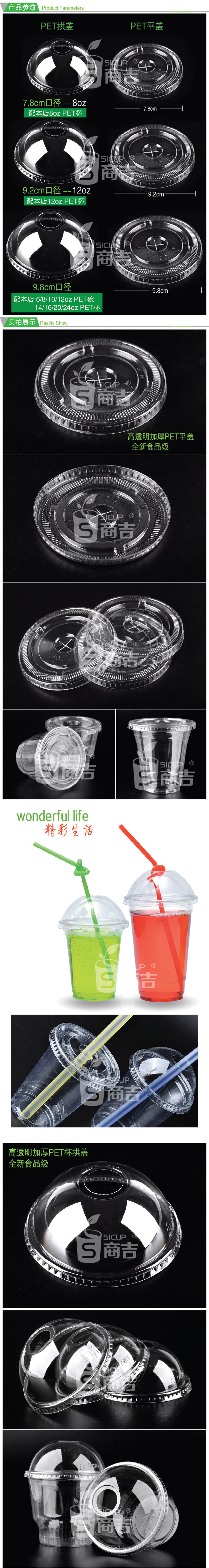 ?pet拱盖平/十字盖球形一次性果汁奶茶打包杯盖100只透明塑料