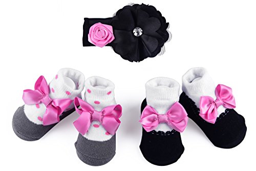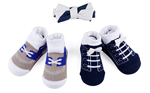 Baby Boy Girl NewBorn Gift Set Bow Tie or Headband and Socks - 0-6 Months - Truffilio Babies Kids