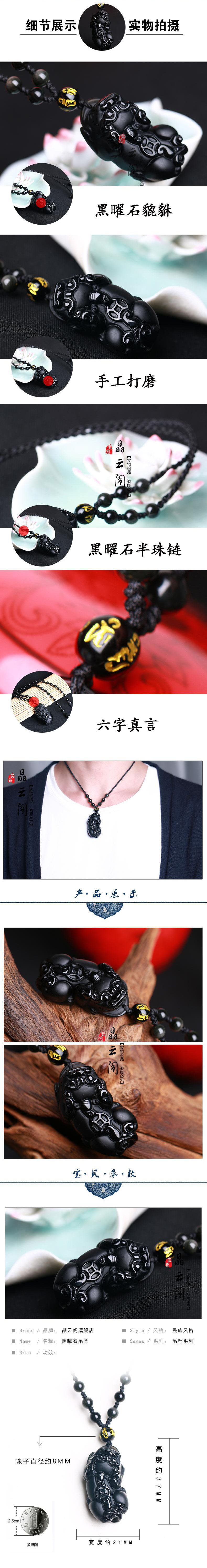 开光天然黑曜石貔貅项链 吊坠 男女款式一钱貔貅饰品挂件