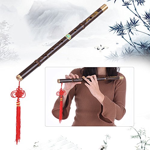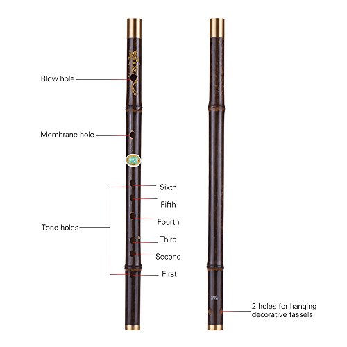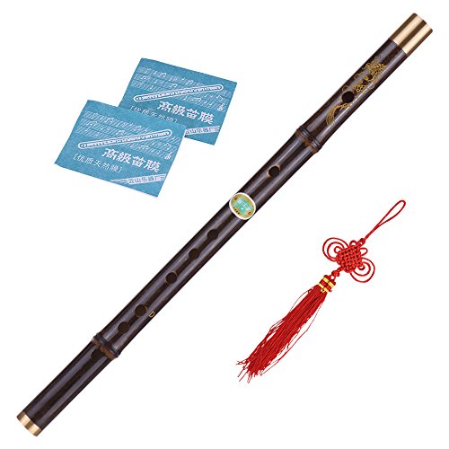 Features: Delicate bamboo flute, D key, easy to play. Quality natural black bamboo, smooth and glossy surface, exquisite copper wrap on two ends. Professional and precise tone holes contributes to the accurate tone, clear and melodious sound. 1 blow hole, 1 membrane hole, 6 tone holes and 2 holes for hanging decorative tassels. Comes with 2 packs of bamboo membrane and Chinese knot.