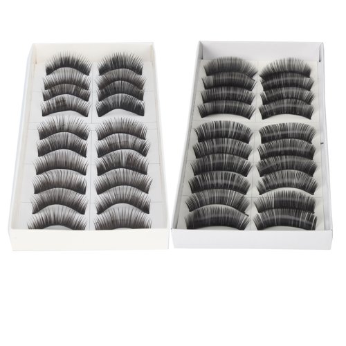 20 Pairs of Black Long Thick Reusable False Eyelashes Fake Eye Lash for Makeup Cosmetic - 2 Kinds of Style by Nails gaga