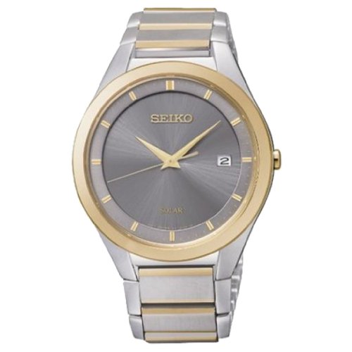원본상품명: Seiko Solar Grey Dial Two-Tone Stainless Steel Mens Watch SNE242【?行輸入】