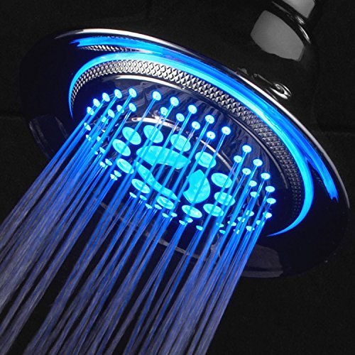 DreamSpa® All-Chrome Water Temperature Color-Changing LED Shower Head is the World's Most Advanced LED Shower Head! • LED lights are powered by running water, no batteries ever needed • Extra-large 5.25" Chrome Face with Reflective Perimeter Rim