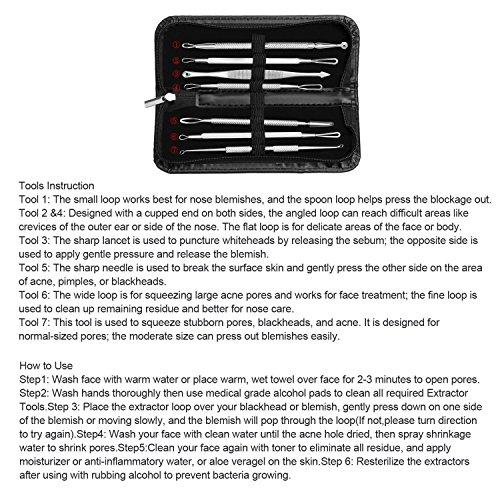 7 comedones extractor tools are used for acne treatment, pimple popping, blackhead and whitehead extraction , zit removing, comedones extracting, etc. Work on all types of skin, one of the best options for those who have sensitive skin