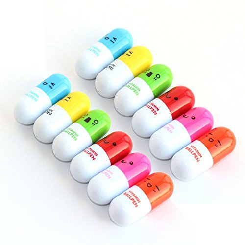 SunAngel 24PCS Smiling Face Pill Shape Ballpoint Pen Cute Cartoon Favor Retractable Ball Pen