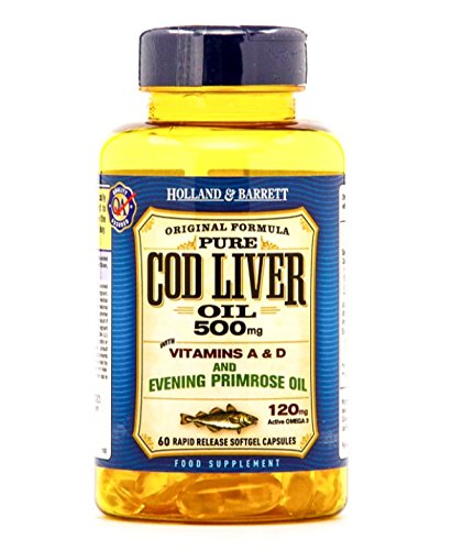 Studio : Holland Barett Publisher : Holland Barett Binding : Health and Beauty Product Description Holland Barrett's Cod Liver Oil is high in omega 3 fatty acids and provides an excellent source of vitamins A and D. Both Vitamins A and D contribute to the normal function of the immune system Vitamin A also contributes to the maintenance of normal skin, whilst Vitamin D contributes to the maintenance of normal bones and muscle function. Evening Primrose Oil provides the fatty acids Linoleic Acid (LA) and Gamma Linolenic Acid (GLA). 0