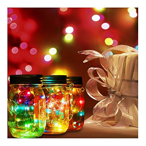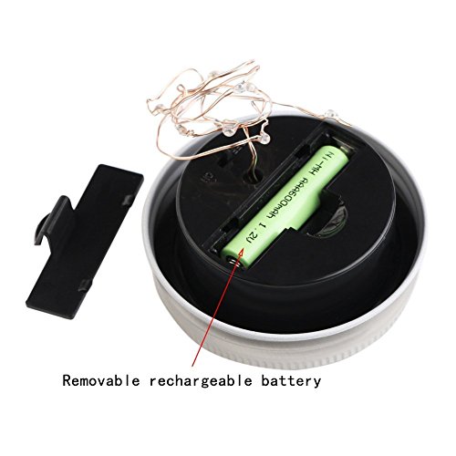 - ✔SIMPLE OPERATION:Solar Mason Jar Lid is connected with 10 Led fairy light (suitable for standard Mason cans; Mason cans are not included), each of which has a switch button below. The switch below lids must be opened before each charge, which can be successfully charged.It is easy to operate.