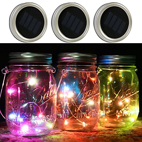 3 Pack - Mason Jar Lights Solar Lids, LED color Solar Fairy Lights for Home, Patio, Lawn, Garden, Party, Wedding, Christmas, Dating, and Holiday Decorations (Jars Not Included)