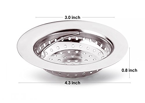 STANDARD SIZE - 4.3" overall dia. includes 3" micro-perforated bowl area contoured by a metal sheet flat rim to rest over sink's drain. Suitable for most families’ kitchen sinks garbage disposals.