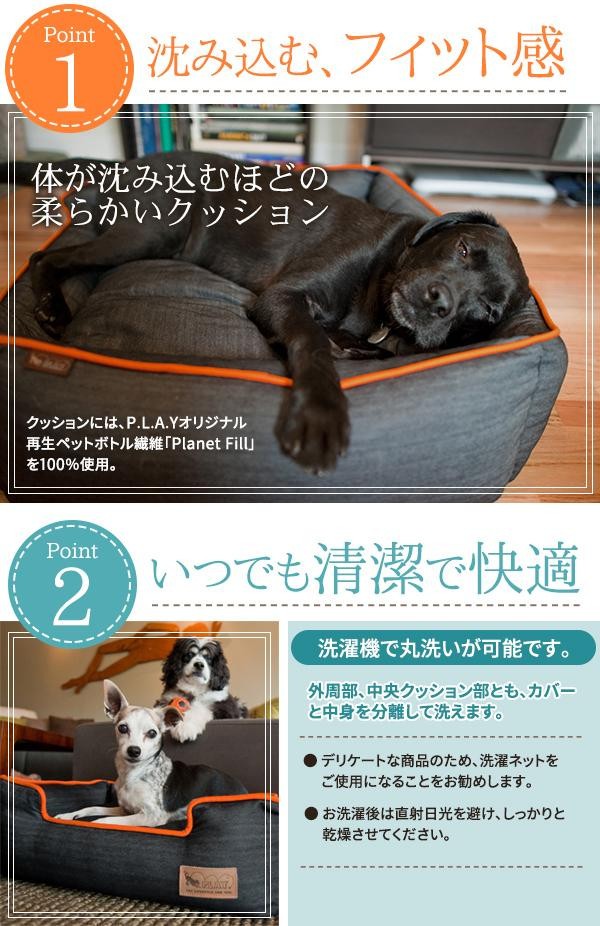 体が沈み込むほどの柔らかいファイバーを箱型に詰め込みました!!クッション性に富み、ペットの体をしっかりと受け止めます。ファイバーには再生ペットボトルでできている繊維を使用。通気性に優れているため、夏は涼しく、冬は暖かく、一年を通して快適なベッド環境を提供します。中心のクッションは取り外し可能で、ベッド、クッションともカバーと中身を分けることができ、それぞれお洗濯が可能です。 |