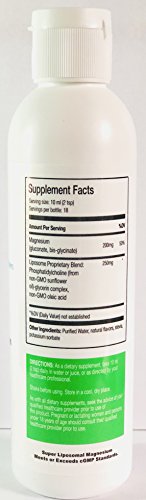 *The date on the bottom of the bottle is NOT AN EXPIRATION DATE. It is the date the product was MADE. Product expires in 18 months after the MADE ON date. *Liposomal Magnesium utilizes as small as 50 nanometer size liposomes to provide a highly absorbable form of Magnesium. 200 mg dose. NON-GMO, Vegan, No Ingredients derived from Soy, Gluten or Alcohol. *Made with a proprietary liposomal manufacturing process that uses no heat, no high pressure, and no solvents and top-quality ingredients. *Liposomal Magnesium is created in our state-of-the-art supplement manufacturing plant. The liposomes engulf and protect the Magnesium as it is digested, making more of the active compound available in the intestines after consumption. The lipids help the body absorb the Magnesium. Derived from a NON-GMO Sunflower oil that goes through a Multi-step purification process to obtain the highest quality and purity. Our facility is cGMP and uses ultra pure water. These statements have not been evaluated by the Food and Drug Administration. This product is not intended to diagnose, treat, cure, or prevent any disease.Feature