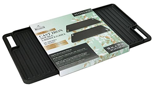 Ewe's Beyond cast iron grill 10" boasts ultra-durable functionality to be use on all heat sources. This is the cookware material of choice for many professional chefs because of its construction provides even heat distribution and superior heat retention. Perfect for cooking steak, burgers, fish and bacon. Clean with stiff brush and hot water, and dry immediately. Simply coat lightly with oil or vegetable oil spray with each use, and the more you use it, the more the seasoning builds up for even better cooking results! this ready-to-use pan distributes heat evenly and keeps food warm after cooking, so you can serve food and second servings to guests without the need to keep reheating. It's built to resist damage and is intended for long term use so you don't need to worry about replacing it over and over.Feature