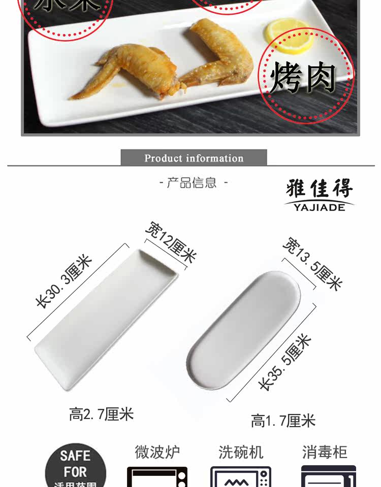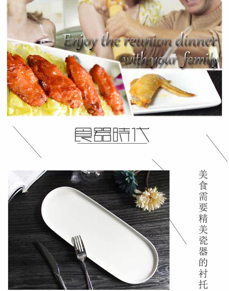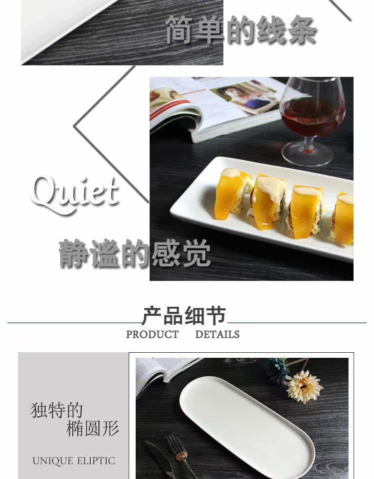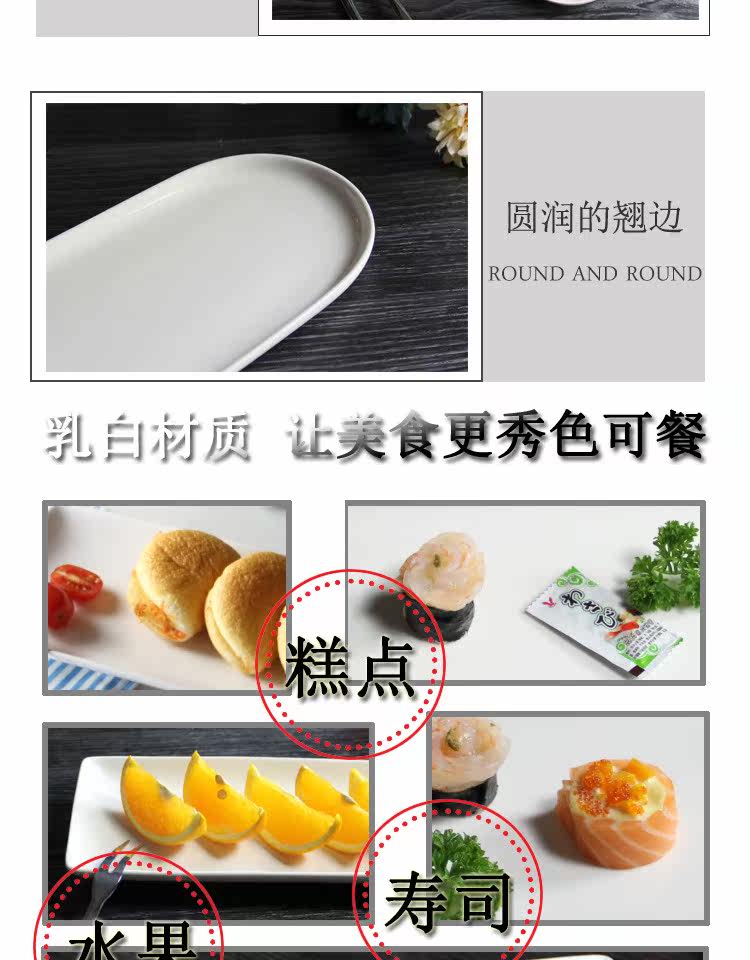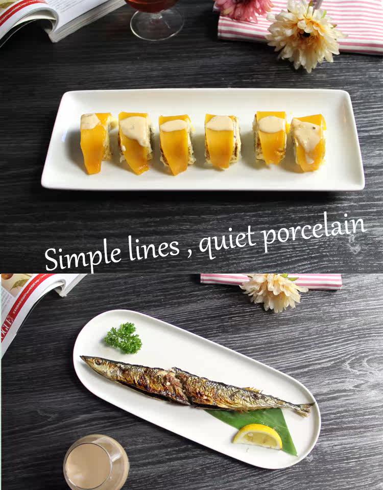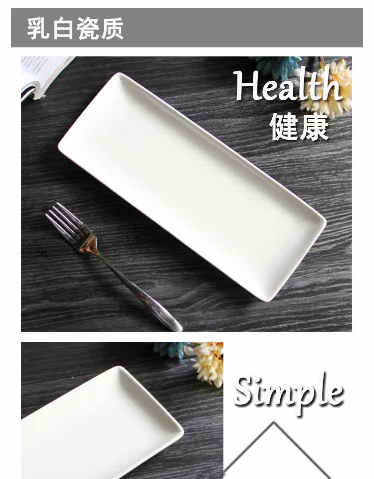 纯白色长方形盘子陶瓷 创意日式寿司盘餐具摆台餐盘 欧式早餐盘