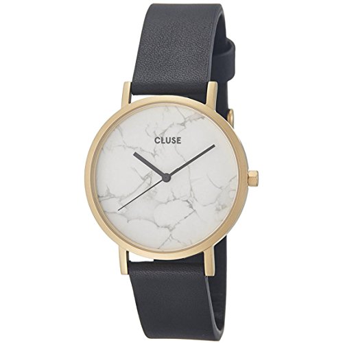Designed as a tribute to one's uniqueness, this CLUSE La Roche watch features a genuine white marble dial, produced from a raw stone. Every piece of marble is one of a kind with a natural veining pattern, which makes each La Roche timepiece entirely unique. this collection features a 38 mm case with a matte gold finish and a black leather strap for a bold and stylish look.Feature