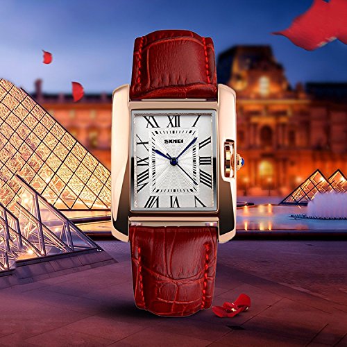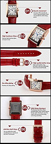 ✔ DESIGN:Roman Numerals Watch Women Gold Bezel with Quality Red Leather band