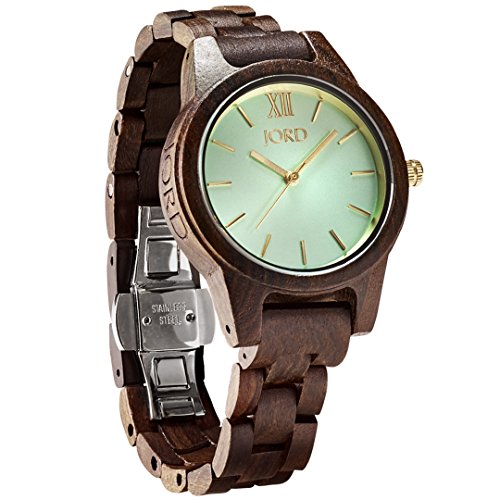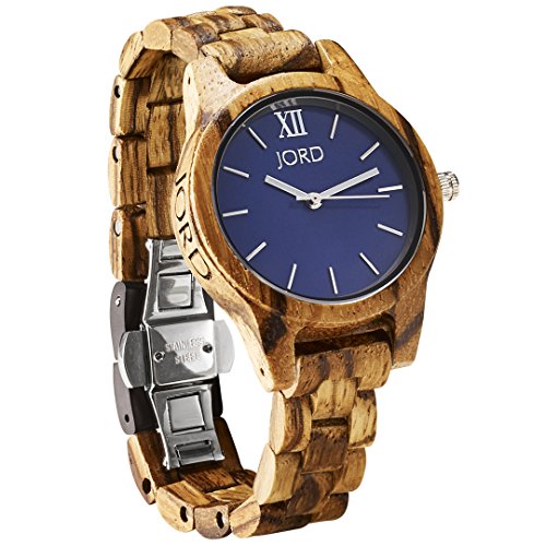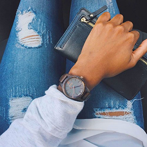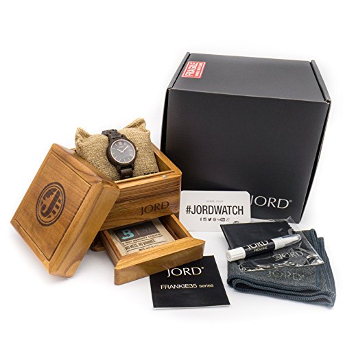 JORD is the top selling premium wood watch brand in the world. The Frankie 35 Series minimalist watch is an ultra-slim sophisticated design. Dark sandalwood offers chocolate hues that darken to a rich coffee color over time. All wood is hand sanded and polished to a smooth, durable finish. Accented with a blue gray dial featuring rose gold hands and hour indicators.