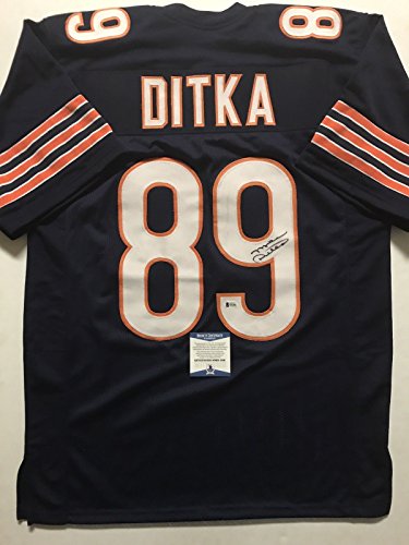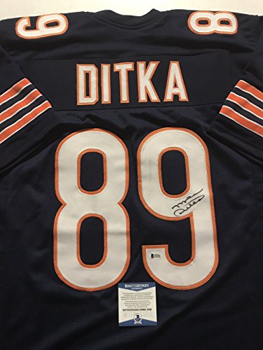 Autographed/Signed Mike Ditka Chicago Bears Blue Football Jersey Beckett BAS COA
