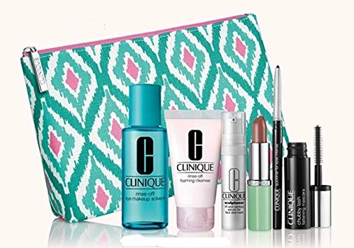 -. Feature : 1. Rinse-Off Eye Makeup Solvent (2 oz.) & 2. Rinse-Off Foaming Cleanser (1 oz.) / 3. Sculptwear Lift and Contour Serum for Face and Neck (0.27 oz.) / 4. Long Last Lipstick in Bamboo Pink (0.12 oz.) / 5. Quickliner for Eyes Intense in Intense Ebony (0.01 oz.) & 6. Chubby Lash Fattening Mascara in Jumbo Jet (0.28 oz.) / 7. Cosmetics Bag