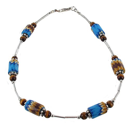 -. Title : Womens Tiger Eye, Fimo & Sterling Silver Ladies Beaded Gemstone Anklet with Daisies