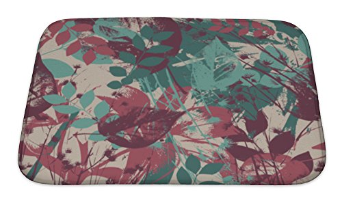 Gear New No Slip Microfiber Memory Foam Abstract Pattern with Leaves Grunge Bath Rug Mat, 24" X 17"