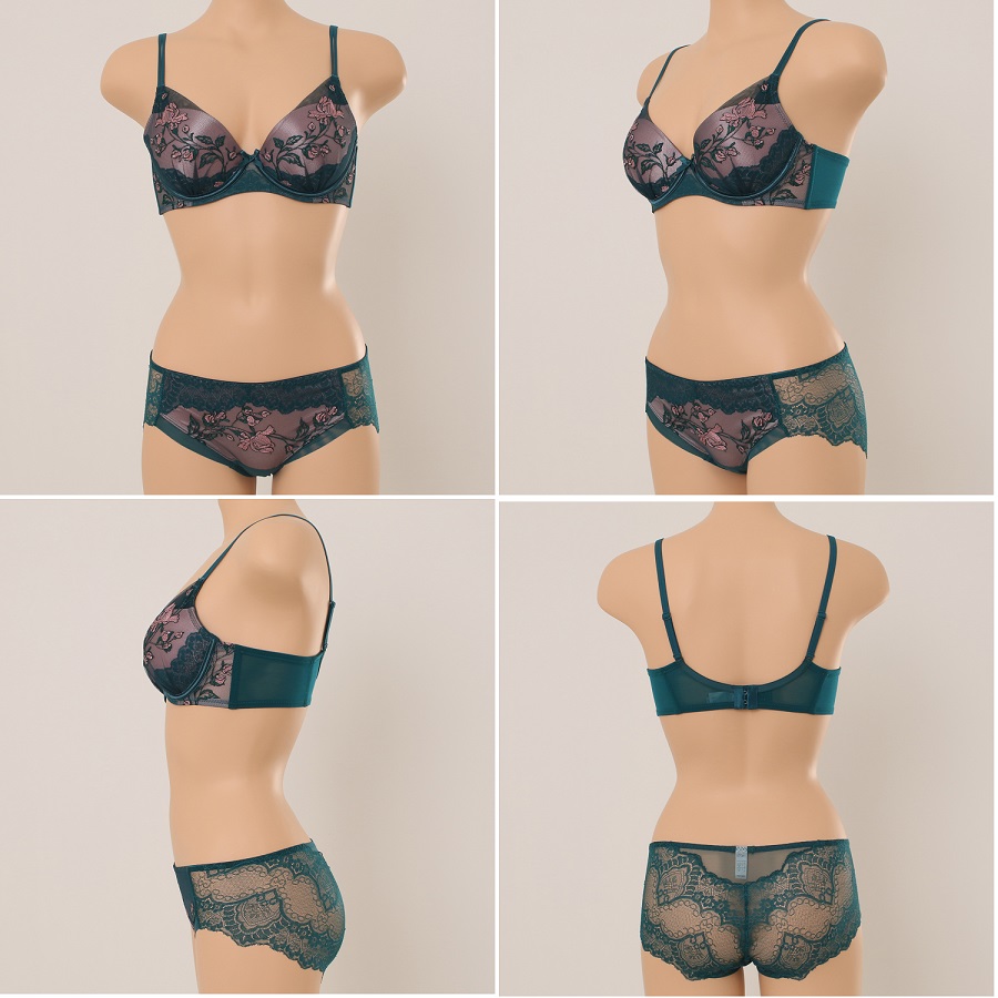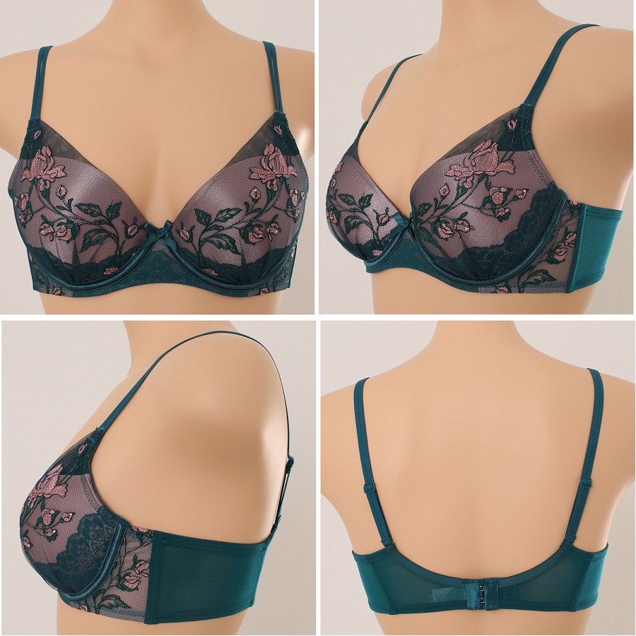 플라워 포인트 자수를 컵부분에 얹어준 몰드브라로 화 려 한 감각을 더한 제품입니다.