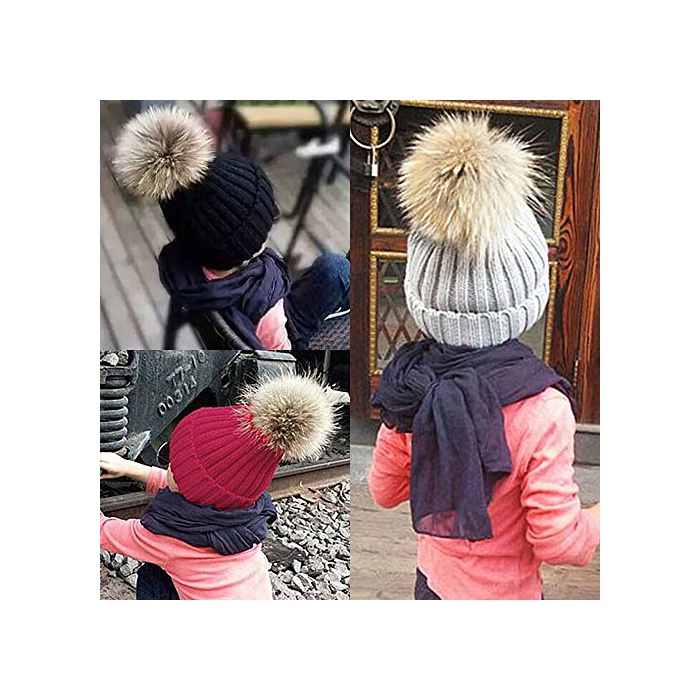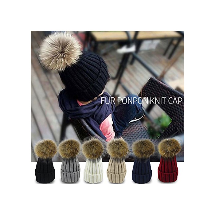 [모노G] MONOZY 키즈 베이비 퍼(fur) 부착 아이 니트모 선택가능 6색 붕붕 니트 캡 남녀 겸용 추동 모자 (01) 블랙)