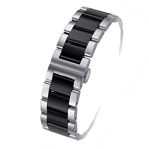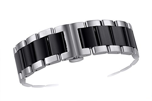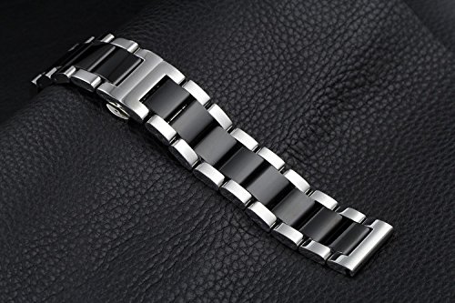 -. Feature : The two tone silver and black metal watch band comes with straight end. At the length of 180mm, it can be adjusted by removing the links. This heavy type band has a thickness of 4.2mm. For the clasp there are two push buttons forming a quick snap in and release style, which when worn makes the butterfly clasp neatly disappears from view. / Great care has been taken in the finishing of the watch strap. Made of quality 316L stainless steel, our popular watch straps create a fascinating lustre and glossy surface to provide you a pleasing wearing experience. With solid links it is tough and corrosion resistant. / The semi-matte wristbands are polished and grinded with the utmost care during the entire manufacturing process. We also use the best PVD coating technology to ensure the long lasting of the color. These time-intensive production processes guarantee the highest possible wearing comfort and the long durability and joy of our products. / The watch band is compatible with most watch brands with standard lug end such as Tissot, Longines, Wenger, , , Mido, Omega, , Tudor, Movado, Rado, Hamilton, Titoni, Certina, Swiss Military, MontBlanc, , Jaeger, Invicta, Zenith, Orgival, Ranceas, Timex, tw, rotary, Kreisler,etc. / We offer a wide range of straps with a variety of sizes and colors to meet your watch needs. (size: 15mm, 16mm, 17mm, 18mm, 19mm, 20mm, 21mm, 22mm, 23mm, 24mm, color: black, silver, gold, rose gold, dual tone silver and black, dual tone silver and gold, dual tone silver and rose gold). All of our stainless steel watch bands are resistant to water, sweat, torsion, UV exposure, and rubbing, but it is recommended to wash them with hot water and tooth paste once a month.