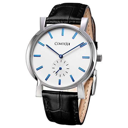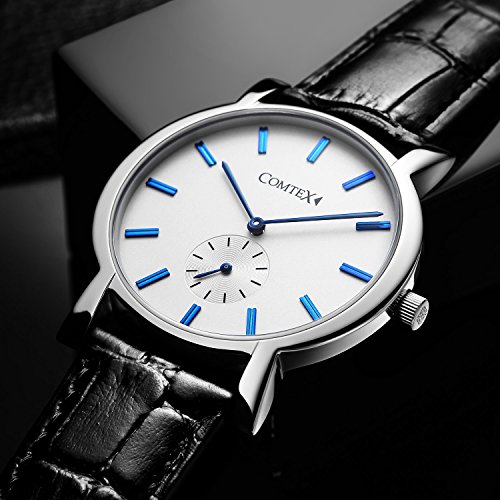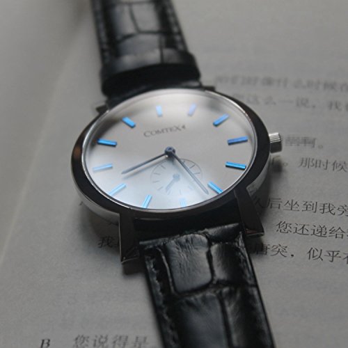 Comtex 맨즈 시계 크로노그래프 기능 레더 밴드 워치블루쿼츠 손목시계