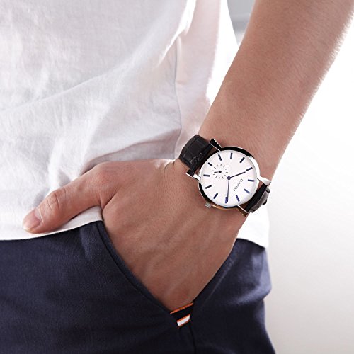 【적용 장소】세련된 맨즈 손목시계 다.화이트문자판과 클래식의블루바늘 에 따라 매우 멋쟁이이다.6시경,크로노그래프 기능이 있어 고급감을 연출한다.여행이나 놀이의 T셔츠나 저지와 일의 슈트에 매칭해 매우 어울린다.