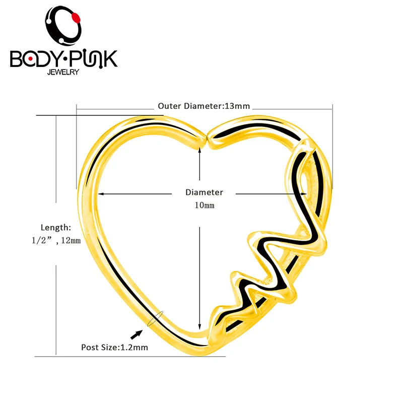 Product Name:16Gauge Heart Shaped Waves Left Closure Daith Cartilage Earring