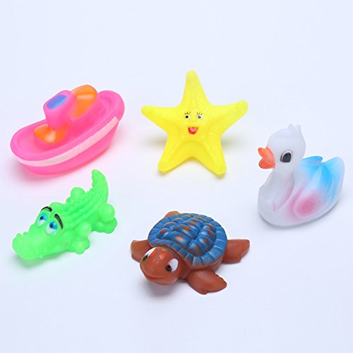 -. Title : Lanlan 5 Pcs Baby Bathing Toys Set Soft Plastic Squeaky Toy Starfish Duck Crocodile Turtle Boat Gift for Kids Toddlers