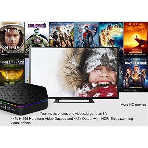 -. Feature : Newest powerful CPU: Amlogic S912 Octa-Core 64 Bit,3GB Ram 32GB EMMC, Support 4K*2K H.265 Decoding / Plug and Play,2.4GHz+5.0GHz Dual-Band Wi-Fi,1000M LAN,Strong Signal and fast speed / Android 7.1 OS, Run quickly and steadily,Suitable for Google Play Store and many other apps,Make your TV into Smart TV / Built in Bluetooth 4.0;Support Mirracast,DLNA,Airplay;Support playing video from SD card, USB drive