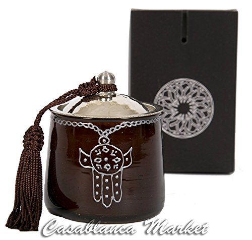 Casablanca Market Moroccan Khamsa Glass Candle, Brown