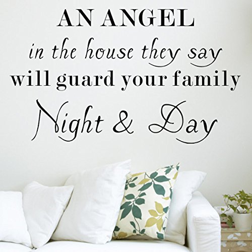 ReleaseDate : 2015-10-24 Studio : Pop Decors Publisher : Pop Decors Binding : Baby Product Product Description High quality wall art product by Pop Decors, creates hand painted look on your wall. Free squeegee. SIZE: 39"W Color: Black The text says: AN ANGEL in the house they say will guard your family Night Day Decals can be applied on smooth and clean surface (walls, glass, doors etc. . ). Not recommended for textured walls (orange, sandy and grainy), fresh paint (less than 14 days) or low VOC (Volatile organic compound) paint. Original designs by Pop decors. 2010 Copyrights Protected. . 0