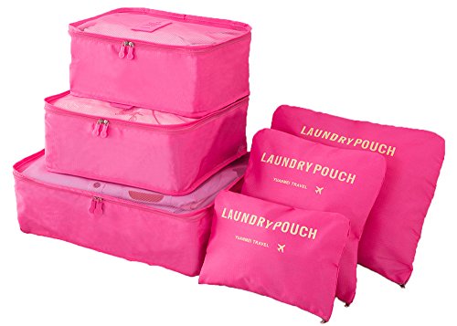UTILITY AND SIMPLE - This 6 piece set fits perfectly into most suitcases, backpacks, luggage bags, and weekender cases. In other words, Packing Cubes can make your journey simpler regardless of whether you're off on a backpacking adventure, or heading on a business trip. Use the largest size to keep your business jackets secure, and the smallest to keep cables and electrical devices safe!
