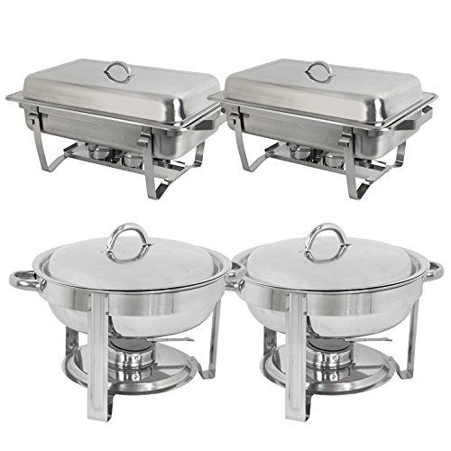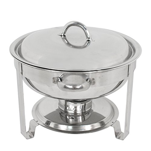 Round Chafer Specifications Overall Size: About 16' x 13.2' x 11'(L X W X H) Alcohol Furnace Size: 3.54" D X9.8" H Material: Stainless Steel Volume: 5 Quart Package Content 1 x Full size chafer frames 1 x Deep water pans 1 x Deep food pans 1 x Alcohol Furnace