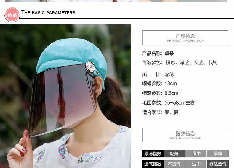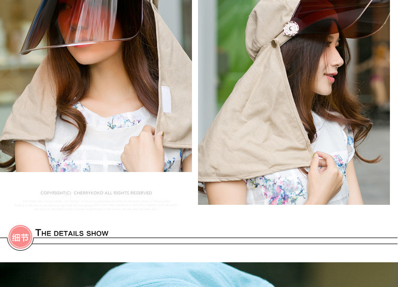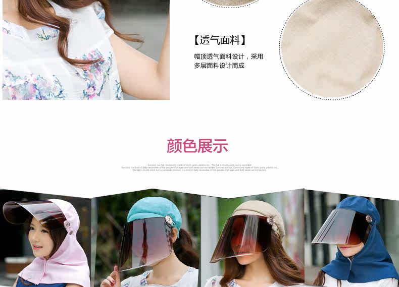 帽子女遮脸太阳帽防晒户外护颈帽夏天骑车遮阳帽防紫外线帽子凉帽