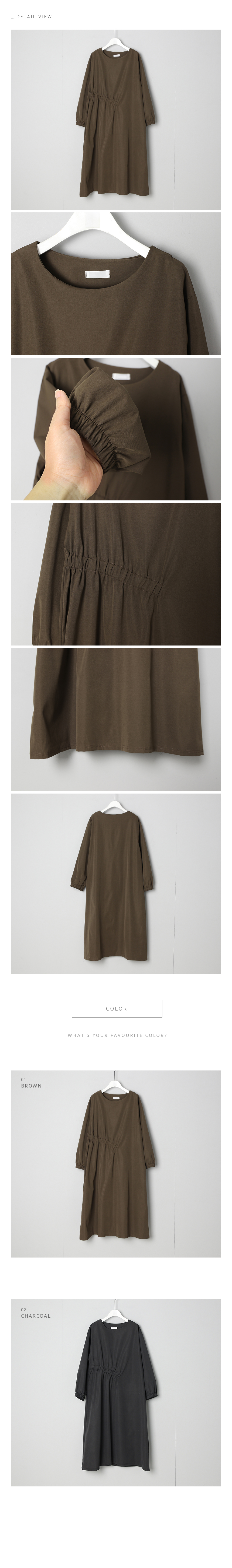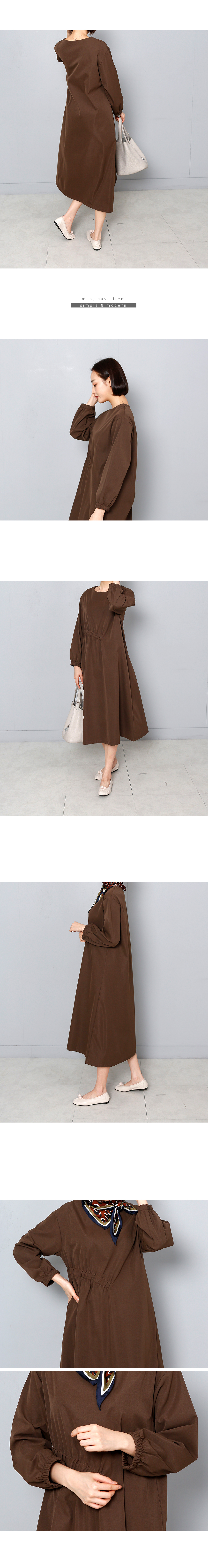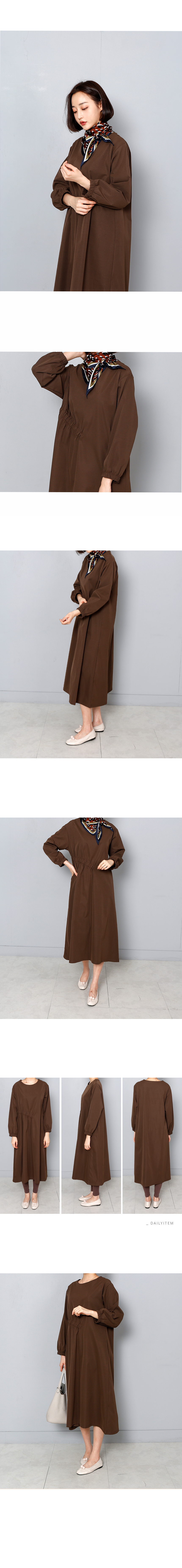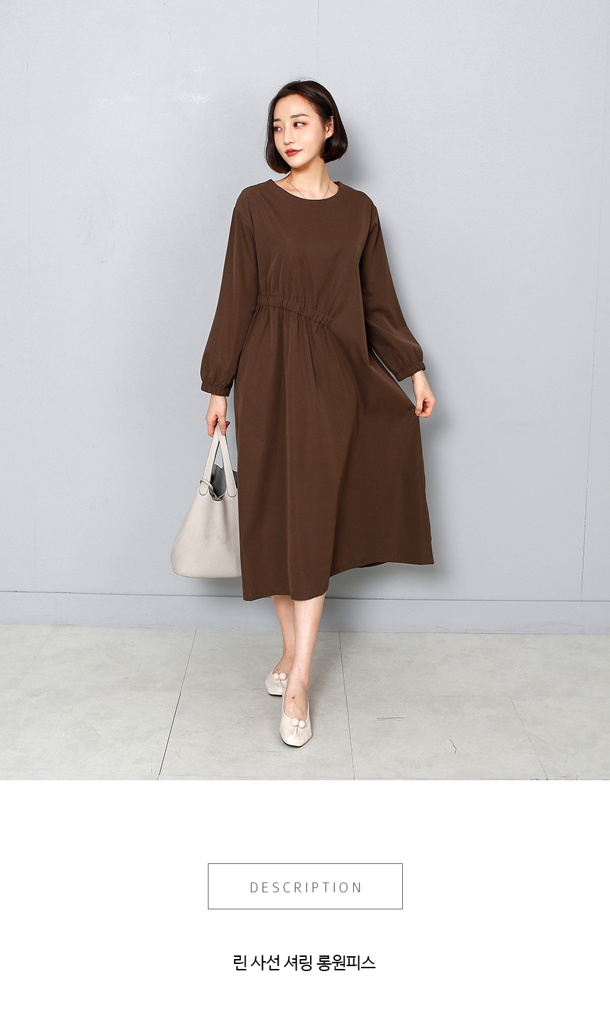 우아하고 세련된 사선 셔링 롱 원피스