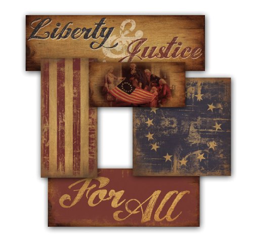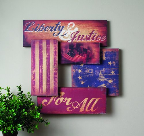 Custom designed wall art from Ohio Wholesale is the answer to all of your home decor and unique gift needs. Our Americana Montage Canvas is a dimensional art piece. Layers of wood covered with canvas are arranged in a random pattern and feature the phrase "Liberty and Justice for All". Display this anywhere to convey your patriotism. Features a saw tooth hanger for easy hanging. Family owned and designed in the U.S.A, Ohio Wholesale has been satisfying customers with our quality and service for over 35-year. Decorate your life with treasures from Ohio Wholesale.