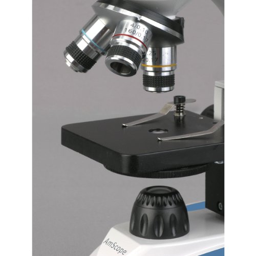 - Forward-facing nosepiece with 4x, 10x, and 40x DIN achromatic full-glass objectives that provide high-resolution color-corrected images