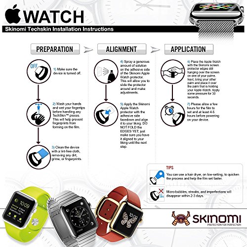 -. Title : Apple Watch 42mm Screen Protector, Skinomi® TechSkin (Updated Version)(6-Pack) Full Coverage Screen Protector for Apple Watch 42mm Clear HD Anti-Bubble Film - with Lifetime Warranty