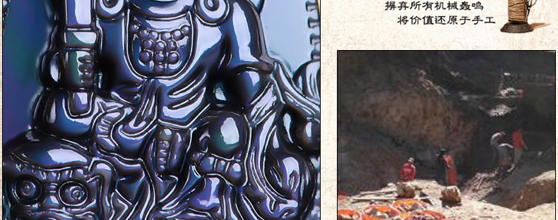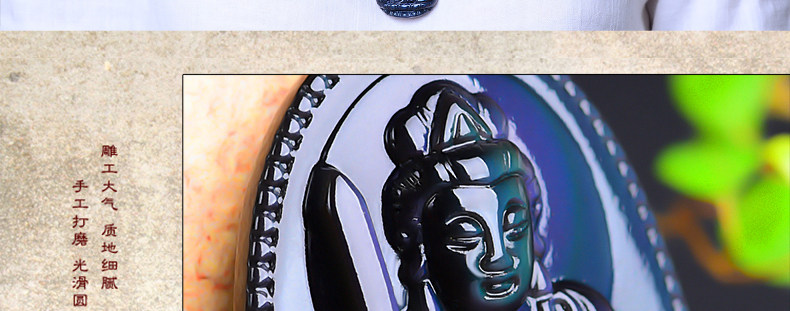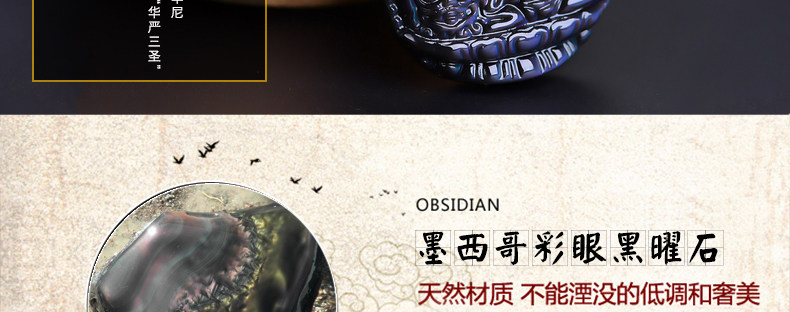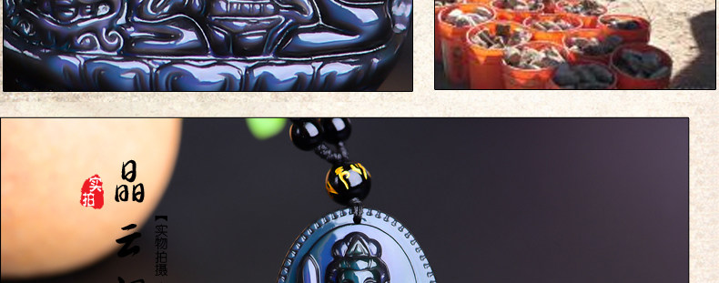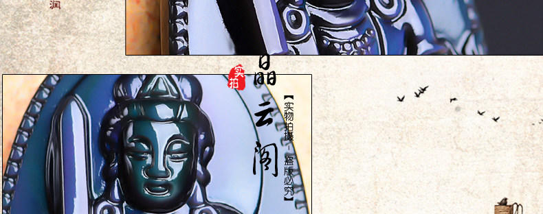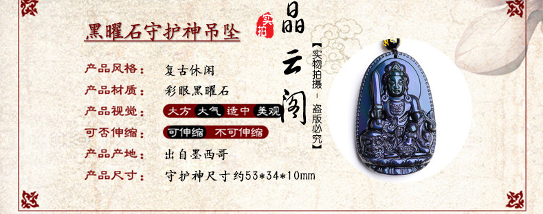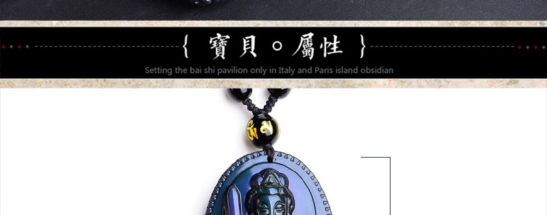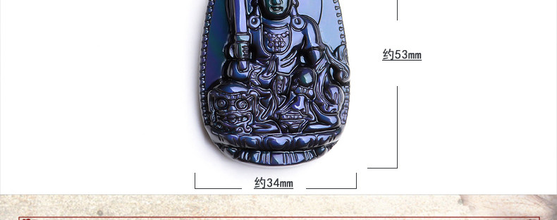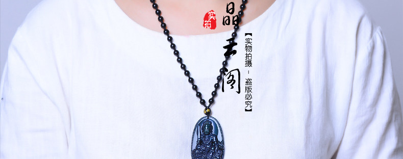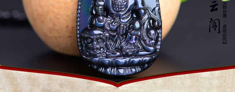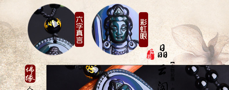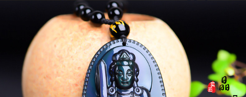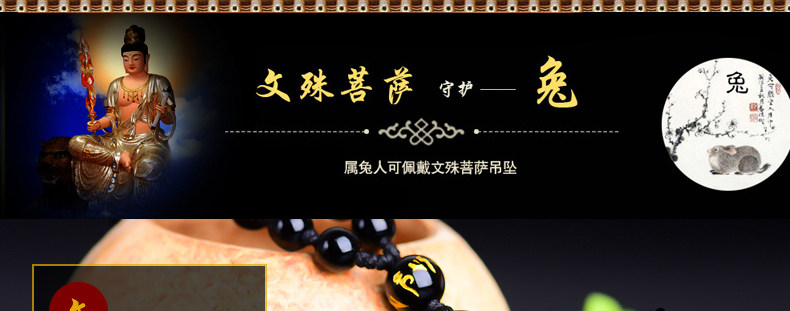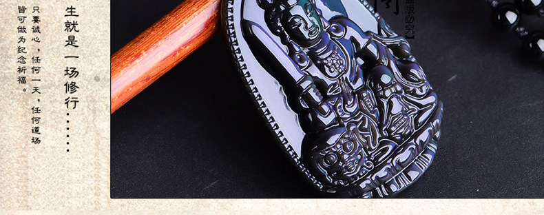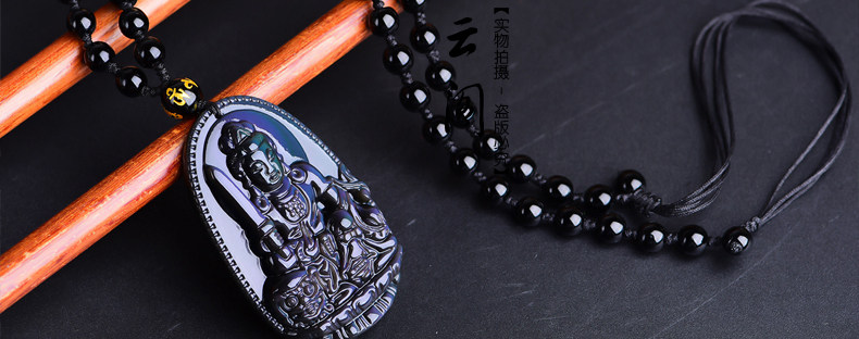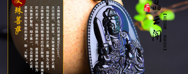 开光 天然彩虹眼黑曜石文殊菩萨 生肖兔本命佛守护神男女吊坠项链