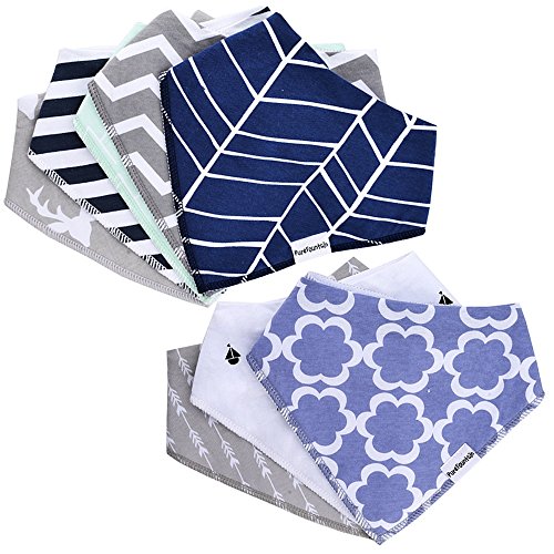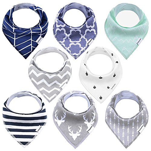 Baby Bandana Drool Bibs for Boy - 8 Pack Bibs Set, Adjustable Snaps & Absorbent Organic Cotton, by PureFountain