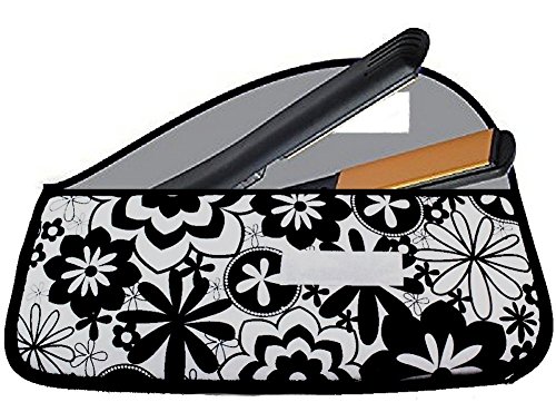 Evriholder travel bag Protective heat resistant storage cover for Hot hair straightener flat curling Iron - Black & White Floral Print