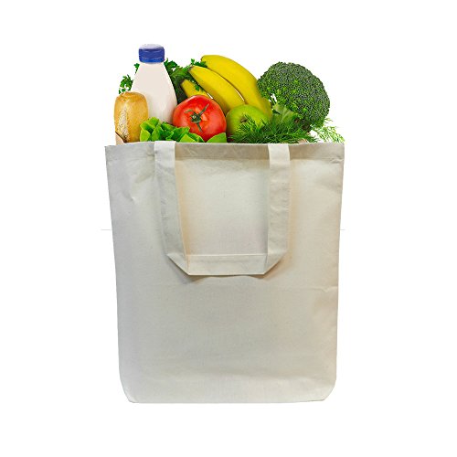 12 Pack Eco Friendly Natural Cotton Canvas Tote Bag 15" X 16" X 3" Shopping Bag, Craft Bag, Beach Bag, Grocery Bag, Travel Bag, Tote Bag for School, Book Bag, Diaper Bag