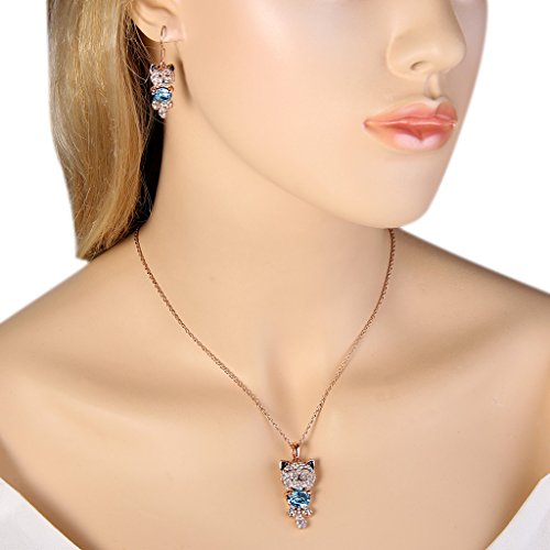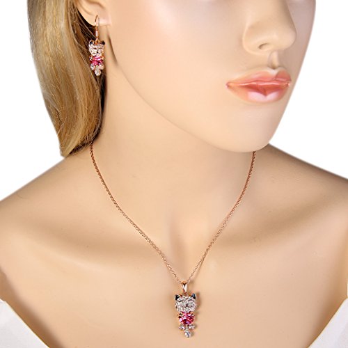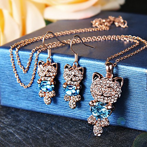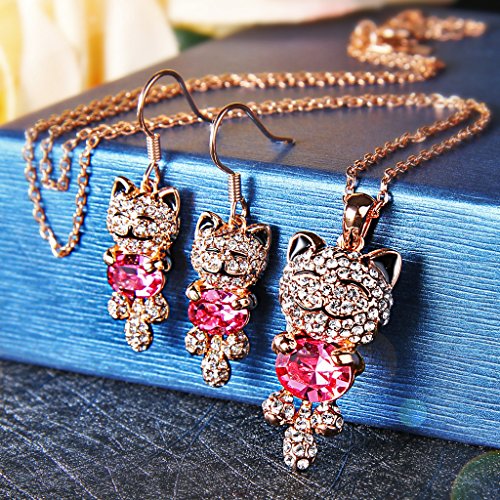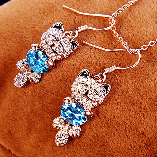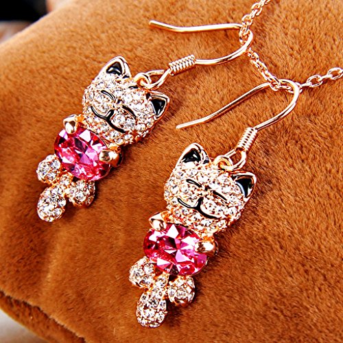 -. Title : EleQueen Women's Gold-tone Lucky Cat Pendant Necklace Hook Earrings Set Adorned with Swarovski® Crystals