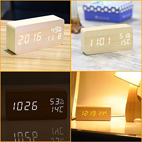 -. Title : Angel one正規品 デジタル時計 LED目覚まし時計 置き時計 多機能 日付表示 音声感知 温度湿度表示 USB給電 省エネ インテリア プレゼント木目調