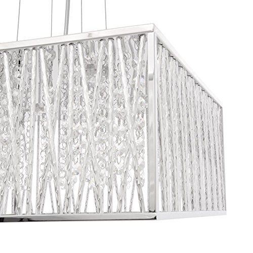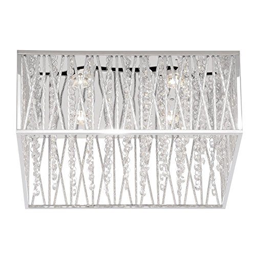 This chrome and anodized silver 4 light 16 in. square flush mount is a must have addition to your home. Chrome and anodized silver combines for shimmer and contemporary appeal. Clear glass dangles gracefully while being illuminated by generous Xenon bulbs. Matching pendant also available. The flush mount uses 460-Watt Dimmable G9 Xenon Bulbs (Included). Hardware included.Feature