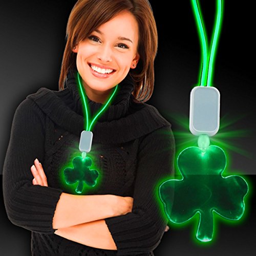 Studio : Windy City Novelties Publisher : Windy City Novelties Product Description Light up St. Patrick's Day with our Light Up Shamrock Pendant Necklace. Watch the Green LED's illuminate this clear plastic clover necklace in a bright and unique way! Press the on/off button located on the rectangle above the pendant to select from 3 different light modes; fast flash, slow flash and steady on. green LEDs light the necklace and the large pendant. 2 CR2016 Batteries are included and installed. Each shamrock pendant medallion is 3" x 3". 0